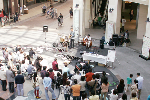 そんな事が本当に街を豊かにするひとつの流れになればと、地元の商店街で現在行われている活動と、東京丸の内のNPO法人「街角に音楽を@丸の内」とを連携してミュージシャンの交流や更なる活動を探っていこうと考えています。